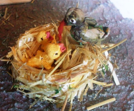 Material : tapón zumo, pasta secado aire, cola blanca, paja.