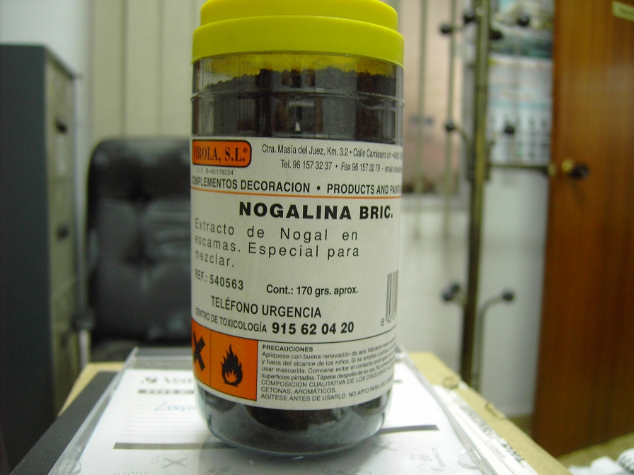 PICT1144.JPG (231KB - 467 descargas)Conchi, no sé si te refieres a lo que pienso, pero una de las diferencias es que la pintura marrón siempre tiene el mismo color, es decir el propio de la pintura y además es opaca, es decir cubre y tapa en donde la aplicas, mientras que la nogalina es una especie de pátina traslúcida, es decir deja ver lo de abajo, y oscurece más o menos según la concentración y el tratamiento que le apliques, pues ya sabes que, al menos en su uso belenista, la forma es aplicarla en la superficie de las construcciones o montañas y luego retirarla con un trapo o esponja.