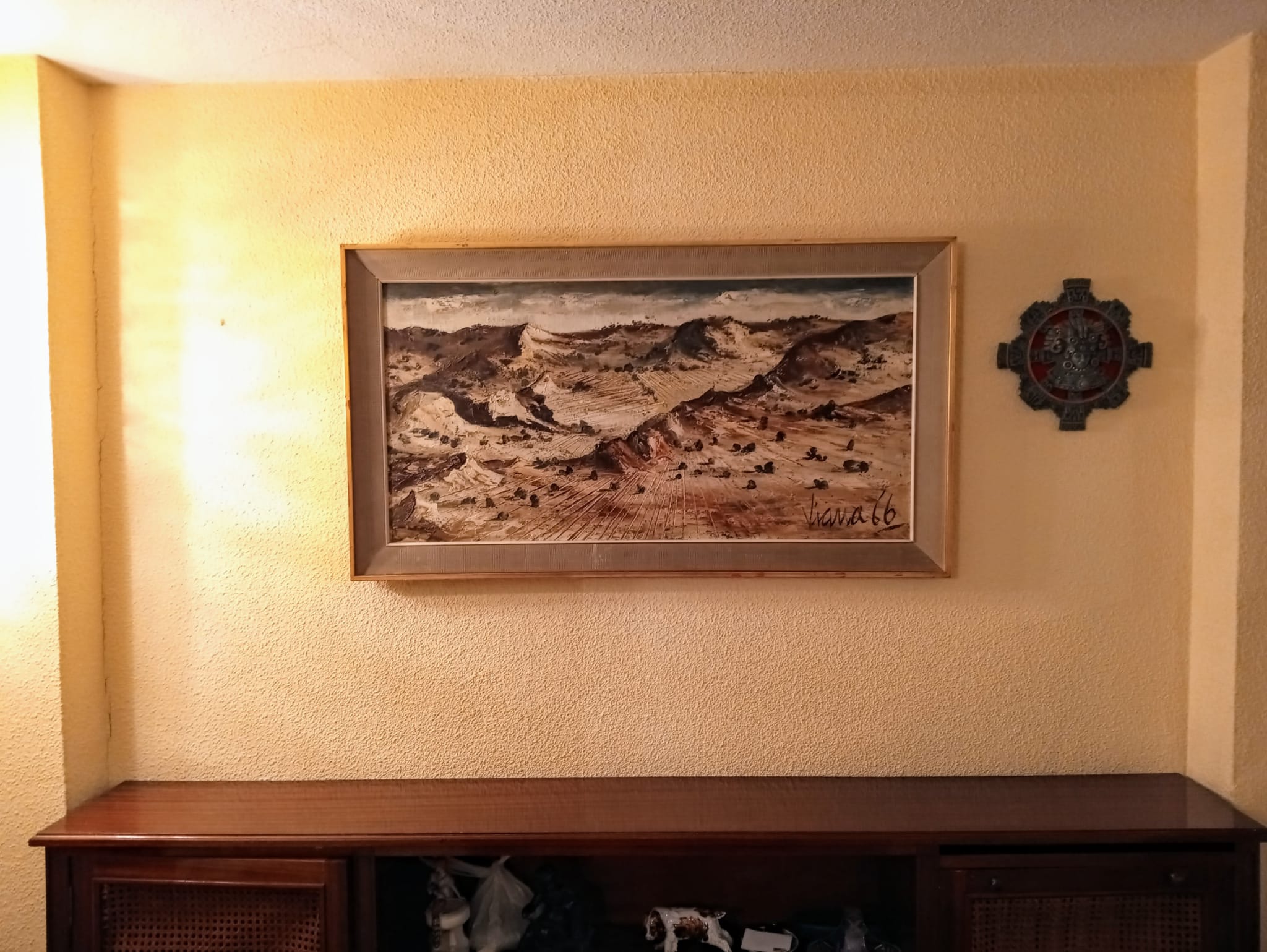 Sin escribir, seguí meditando al hilo del nacimiento... y medité sobre el fondo y ese paisaje de la Alcarria de Sigüenza, que como ya dije se palpa con la mano la pincelada pastosa, gruesa... y a la vez deja sobre el lienzo surcos y riscos de pintura y de paisaje... El que escribe, por medio del que crea, agradece al que pinta y pone maravilloso fondo a una escena contribuyendo con el dinamismo de la naturaleza y de la historia pasada (y sagrada) traída al presente....