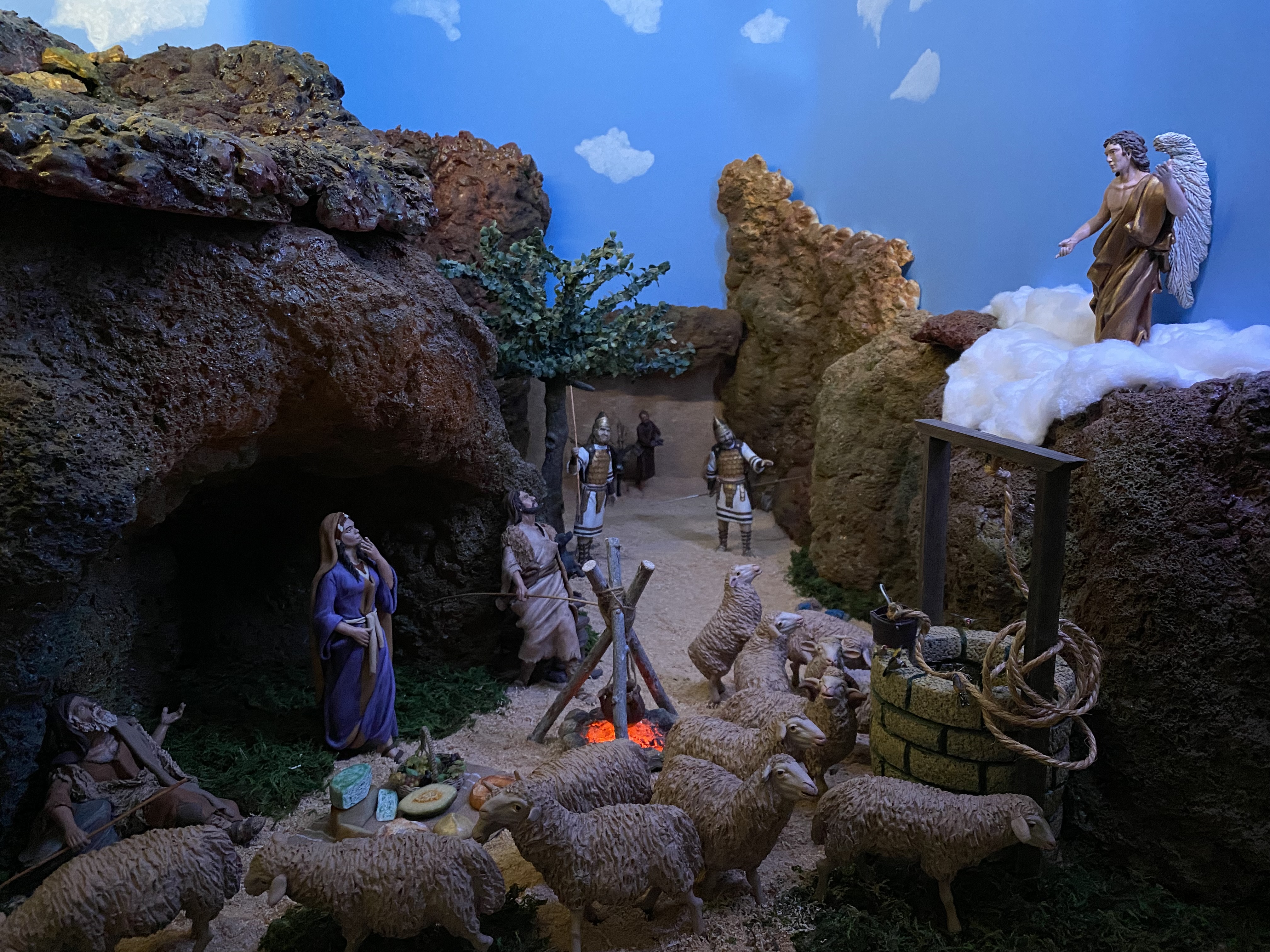 Compartimos por aquí con todos vosotros nuestro Belén de este año 2023. Las figuras del Misterio, Reyes, Anunciación, Mendigo y Soldados de la Guardia Judía (Los Soldados y el Mendigo son estrenos de este año) son de Javier Guilloto. El resto de figuras son de Hermanos Cerrada. Las ovejas y cabras son de Villarán. Hay animales pequeños (Pajaros y lagartos de la especie Agama Sinaita) obra de Bart que también estrenamos este año y hay complementos de Adrian Navalon de Artes Belenes Chinchilla (merienda de los Pastores de La Anunciación), de Barsua 3d (toneles de vino que estrenamos este año) y de Alfares (panes, frutas, verduras y tinajas). Como habitualmente, montamos 2 escenas dentro del escenario del Belen: Una parte que es la población de Belen y otra parte, exterior al pueblo, más de ambientación rural/campestre donde tiene lugar la escena de La Anunciación que este año se complementa con las 2 figuras de los Soldados de la Guardia Judía que intentan representar que, yendo de patrulla, se han visto sorprendidos, al igual que los Pastores, por la aparición del Ángel. Esperamos que os guste y que disfrutéis de las imágenes del mismo que os compartimos. Está hecho, pese a nuestras limitaciones y fallos, con todo el maximo cariño, Ilusion y Amor por esta maravillosa Tradición que tanto nos gusta. Feliz Navidad a todos!