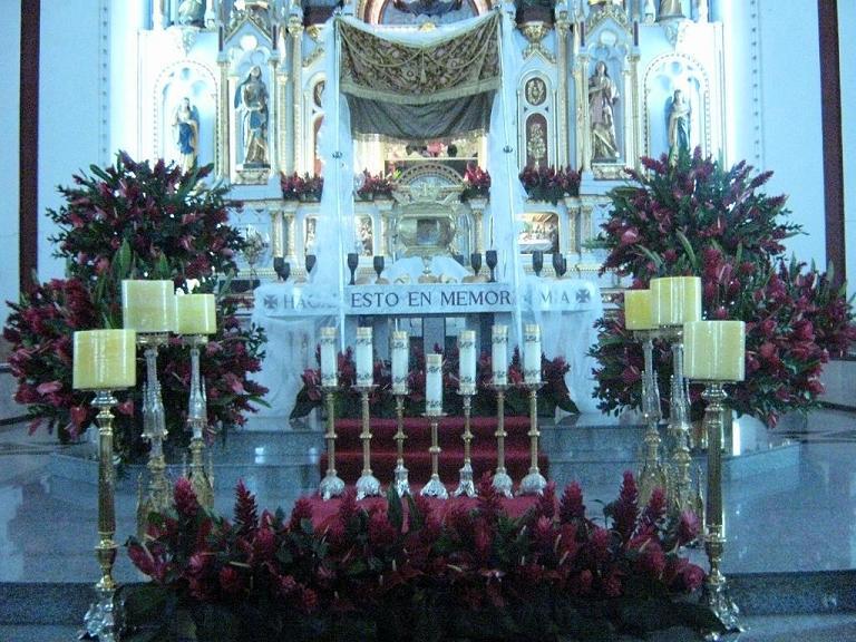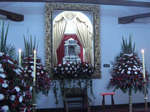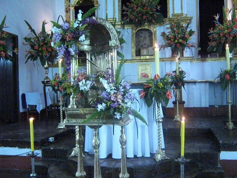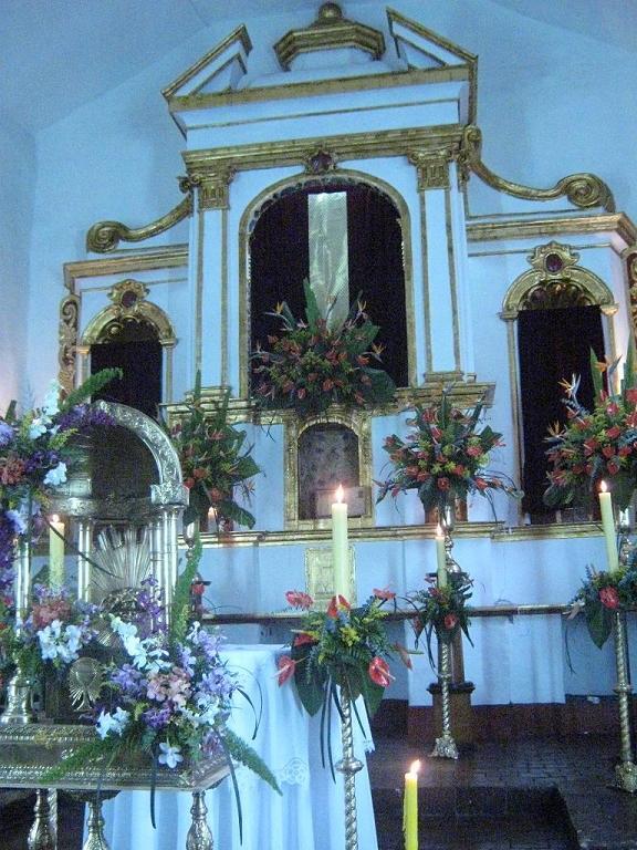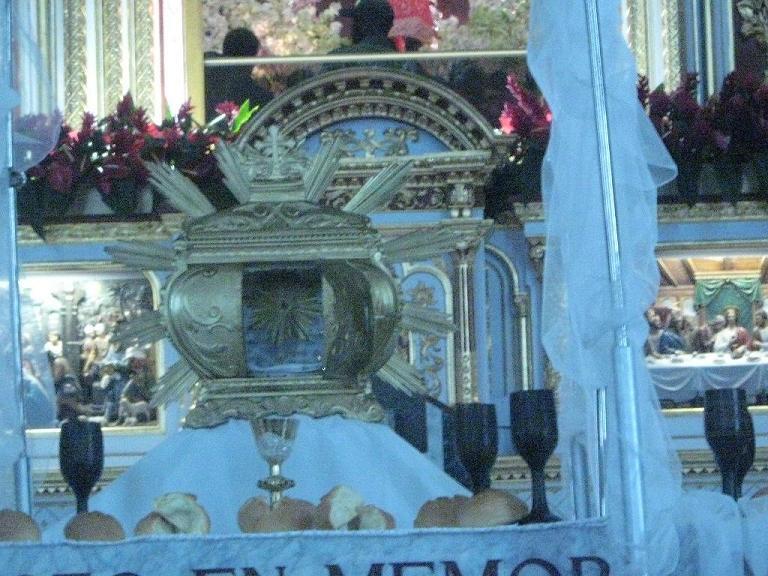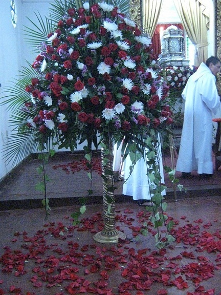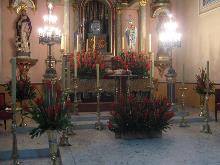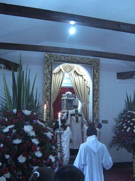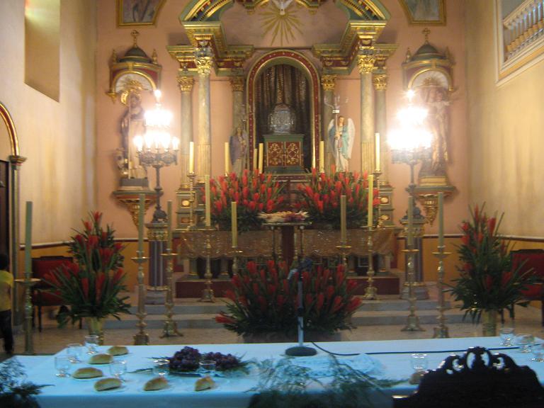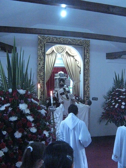 Os voy ha poner el de mi pueblo, no se pudo sacar bien pues había gente y la Iglesia estaba muy pobre de luz, ademas todavía no habían retirado las bancas que están delante y como se llevo mi hijo la cámara no pude hacer otras fotos. Os cuento un poco nuestras costumbres.