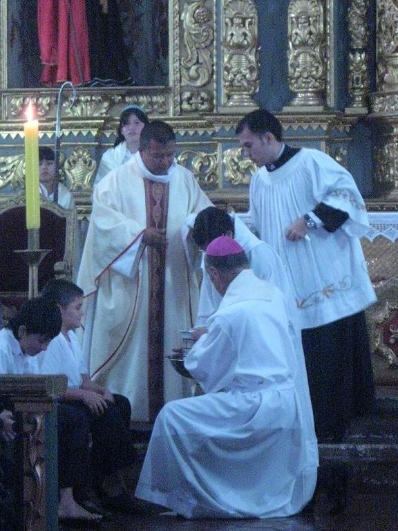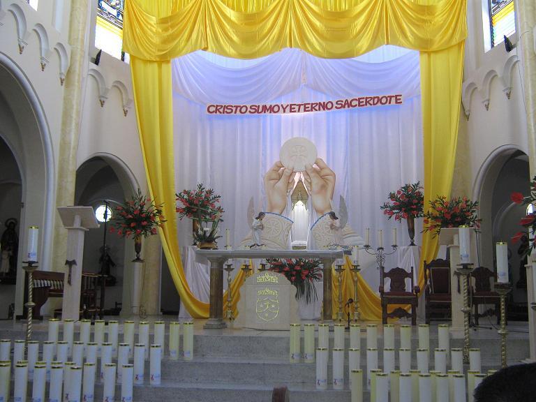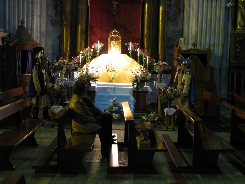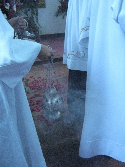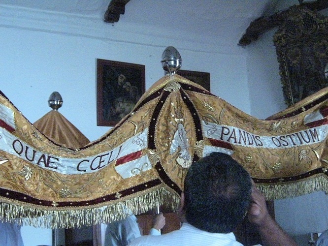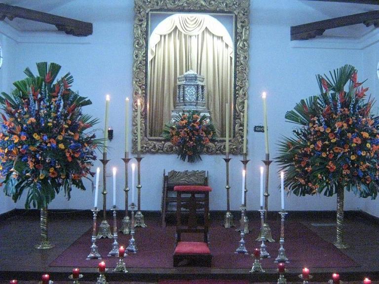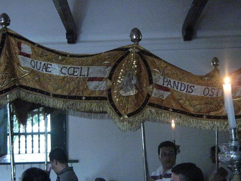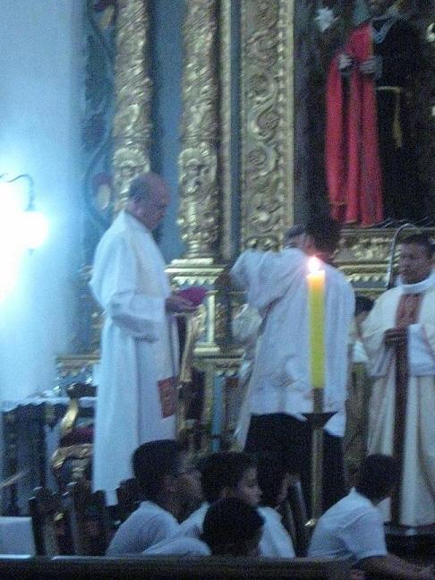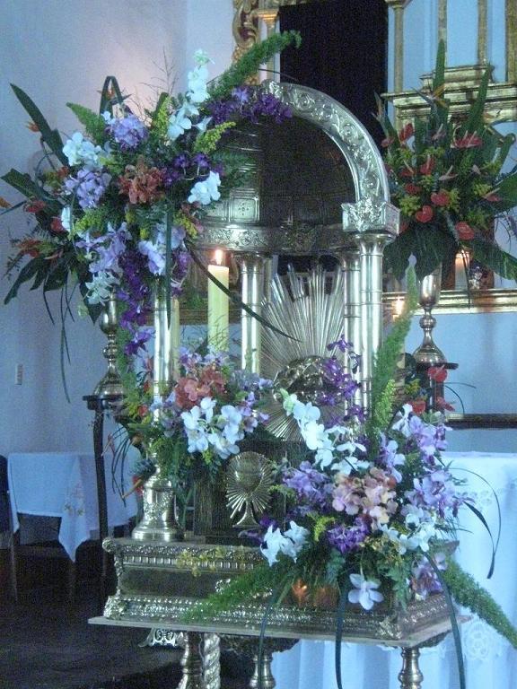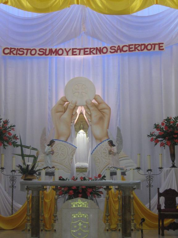 Os voy ha poner el de mi pueblo, no se pudo sacar bien pues había gente y la Iglesia estaba muy pobre de luz, ademas todavía no habían retirado las bancas que están delante y como se llevo mi hijo la cámara no pude hacer otras fotos. Os cuento un poco nuestras costumbres.