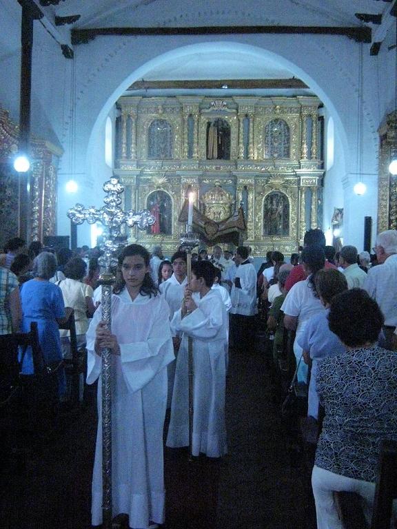 Os voy ha poner el de mi pueblo, no se pudo sacar bien pues había gente y la Iglesia estaba muy pobre de luz, ademas todavía no habían retirado las bancas que están delante y como se llevo mi hijo la cámara no pude hacer otras fotos. Os cuento un poco nuestras costumbres.