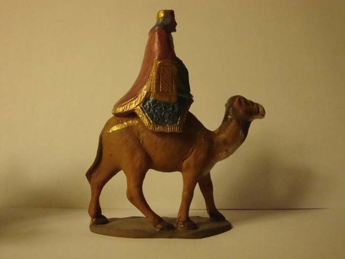 Bueno aqui presento una "nueva antigua" cabalgata de castells, datos de interes mide 9 cm en total, debe de ser para figuras de 6 cm, es muy detallada para el tamaño que tiene, los reyes son desmontables, aunque estos estan pegados, imagino que con buen criterio por el buen estado de conservacion que tienen, segun el vendedor son Castells y muy antiguos, lo cual yo casi lo corroboro al 100 % y forman parte del mismo juego que la adoracion de 11 que presente aqui, y que tambien salio a subasta junto con un nacimiento de castells y alguna cosita mas, todo de estos artesanos.