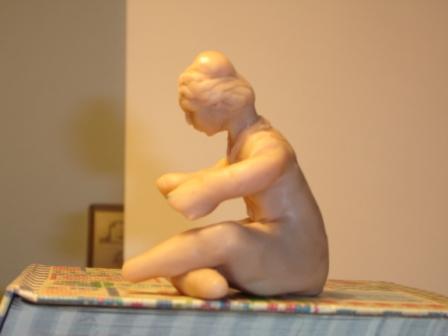 Aquí os enseño con lo que estoy ahora. Quiere ser un niño sentado en el suelo leyendo la torá. Como veis está a medio hacer pero quiero vuestra opinión antes de terminarlo. Este lo he hecho con una masa parecida al fimo que se llama Supersculpey así que en cuanto lo meta al horno la cosa no tendrá solución.