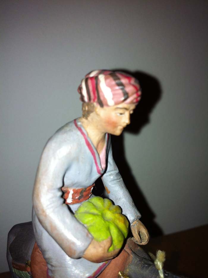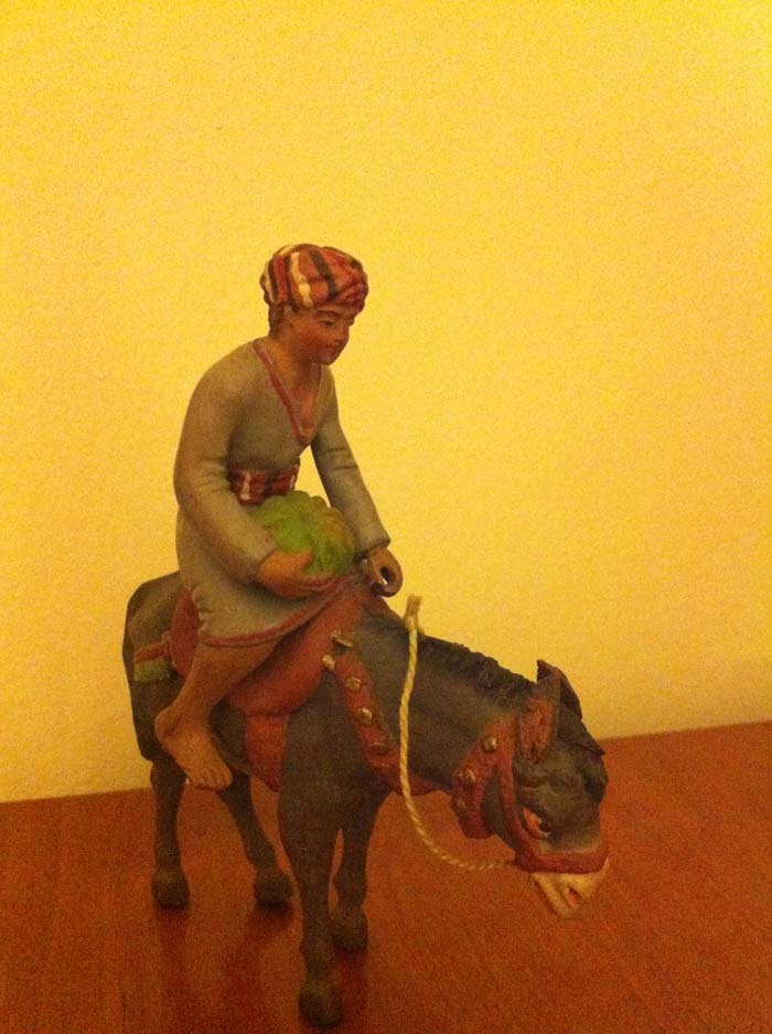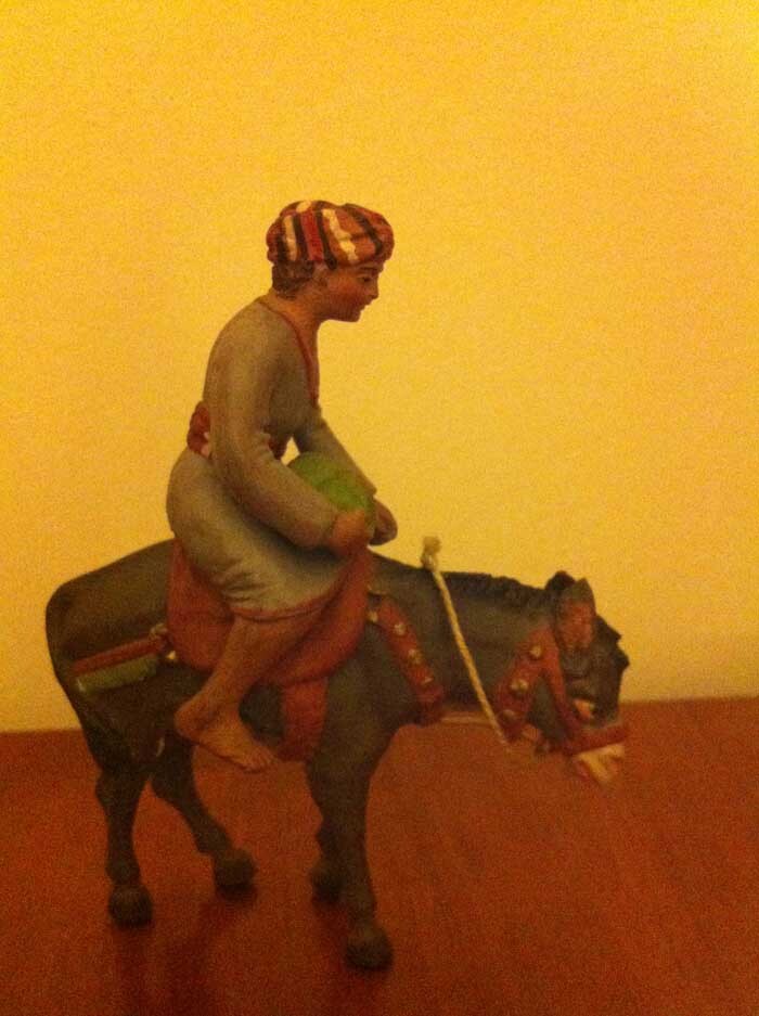 Es una pieza muy curiosa y para mi opinion muy de sus inicios por ese modelado que ya apunta detalles, de su obra posterior, como curiosidad el mulo esta mas detallado que la figura eso me hace pensar que puede ser de otro autor pero esta tan bien hecho que no se de quien, aunque hay detalles como los flecos de la aparejada que tan tipicos son de Daniel, para mi es una buena pieza no por la calidad si no por su rareza y por que muestra la evolucion de este artesano.