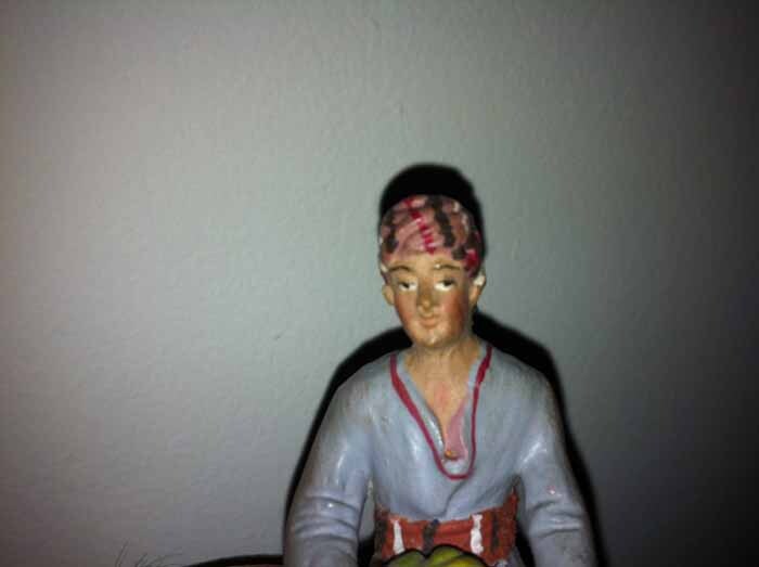 Aqui os presento mi ultima adquisicion, una pequeña figura Daniel de primerisima epoca, con sus desproporciones y sus virtudes, elementos tipicos como la calabaza y el rallado del turbante y faja, datos curiosos, orejas del mulo de cuero, tamaño total 11 cm, la figura es de 9.