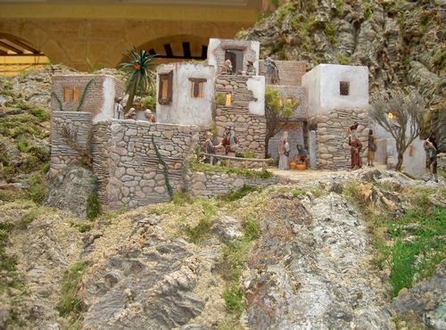 Bueno desde ese punto de vista tienes razón. ¿Sabes qué pasa? Lo que sucede es que cuando la gente dice que Mayo crea sólo figuras es cierto pues las imagina, crea y comercializa. Pero desde mi punto de vista, por ejemplo con el Belén de La Grande Créche de Madrid expuesto en París en 1987 o el Monumental Belén de Bancaja o para la Asociación de Belenistas de Alicante para mí no sólo las hace sino que también monta el Belén. Sobre todo en el de Bancaja no soy capaz de concebir la idea de que sólo esculpe figuras. Mayo ha creado las figuras pero también considero que crea los diferentes "dioramas" por así decirlo. Él ha tenido que crear las diferentes figuras partiendo de unas ideas preconcebidas. Por ejemplo, cuando los niños correteando por el camino rompen las cerámicas a una señora, cogen higos chumbos. Para mí eso es parte del propio Belén, que él ha hecho y por ello sin estas escenas creadas por él no habría Belén.