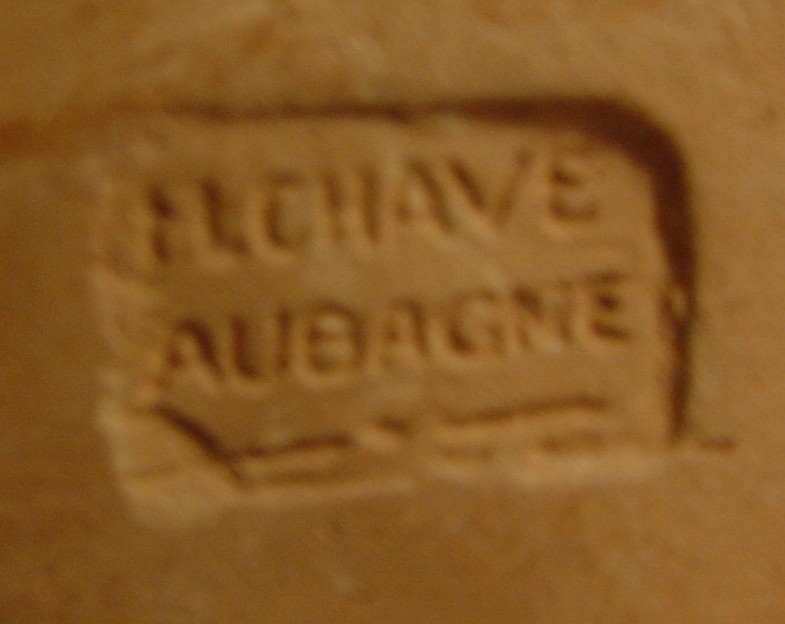 Amigo Ayora, has logrado adquirir con pocos euritos una pieza de valor relativamente antigua y que lleva el verdadero sello cuadrado de Marius CHAVE (aunque sea vestida con ropas : lo digo asi porque tengoyo la mania de los santones pintados )