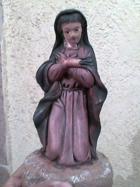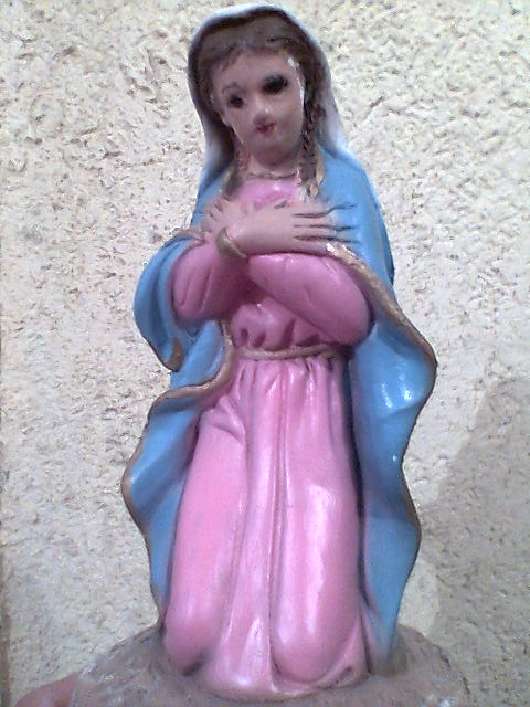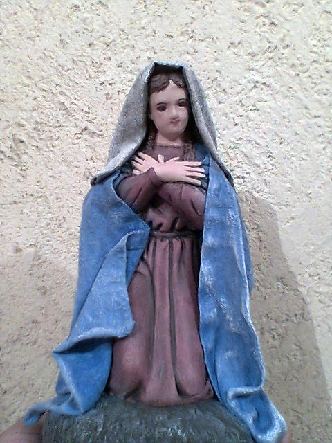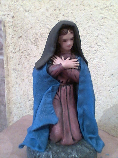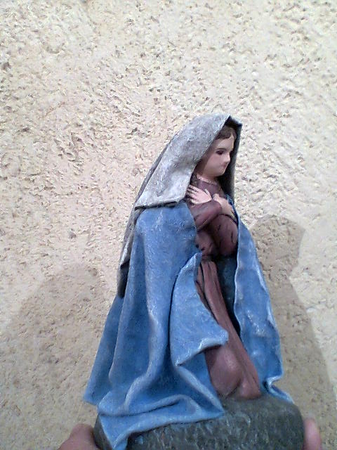 Esta virgen la encontre en un negocio de figuras pero la estaban rematando por que estaba tallada y como me gusto la posicion de la virgen para mi anunciación pues la compre y la modifique. perdon si no se ven bien las fotos pero no me salieron de buena calidad.