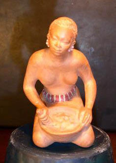 Y finalmente, una curiosidad, no es de belén, pero es de barro, antigua, va firmada (¿Catalá?), es muy graciosa y puede colocarse como nativa egipcia o esclava nubia en cualquier lado, ya que encaja con las figuras de 12 cm... adquirida por dos euros en el Mercantic de Sant Cugat