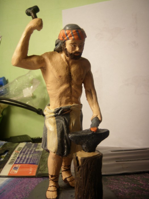 Hola os pongo unas fotos del herrero ya terminado. Es la primera vez que pinto las figuras con esta tecnica ya que el año pasado las pinte dandole al final betun de judea y el resultado final no me gustaba mucho la verdad.