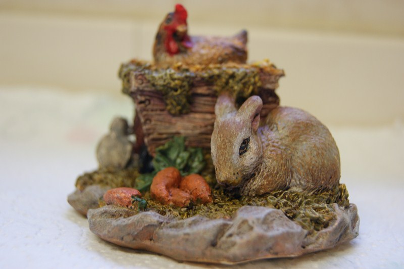 Estupendas pero....como soy la crítica oficial del foro (y si nó ya lo verás como me hacen)te digo que los ojos de la gallina...están muertos,no tienen vida,prueba,una de dos,o un puntito blanco o pintarle los ojos con una gotita de barniz,creo que alguna de esas dos cosas es lo que te falta,el conejo me encanta y la gallina en cuanto que le des vida a los ojos...seré una de tus fans.....Felicidades.(Ya miraré a ver que opción has cogido jejejeje) Aquí a lo que me refiero....