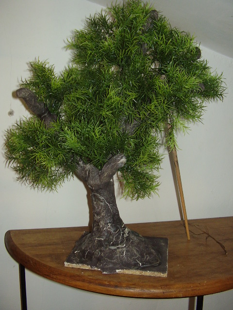 lo e conseguido coguiendo una rama seca y forrandola con pasta das luego con un cepillo de alambre lo he rrallado para hacerle unos surcos,que os parece