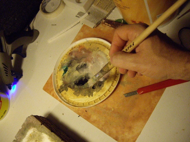 El material que uso para modelar, a veces es masilla epoxídica (de dos componentes, como las que puedes encontrar en Ferreterías) o a veces FIMO, Super Sculpey, etc. Soy bastante inconstante en cuanto al uso de masillas, me gusta experimentar depende del momento y las ganas.