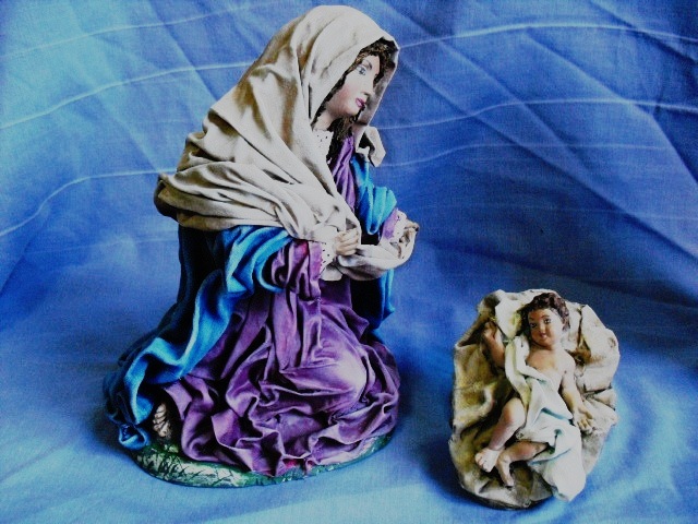 Hola tod@s, auí os dejo unas fotos del nacimiento que acabo de hacer, primero he trnsformado las figuras, a la Virgen la cambie la posición del cuerpo y los brazos que tenía sobre el pecho y San José sólo le cambié la posición de uno de los brazos separándolo del cuerpo, después entelar y pintar. Son de 30 cm y 21 la Virgen. Espero que os guste, y si nos es así pues estoy dispuesta a recibir todas las críticas que querais hacer para mejorarlo. Los colores no han salido como son el realidad, pero la culpa es de la cámara,jajaja.
