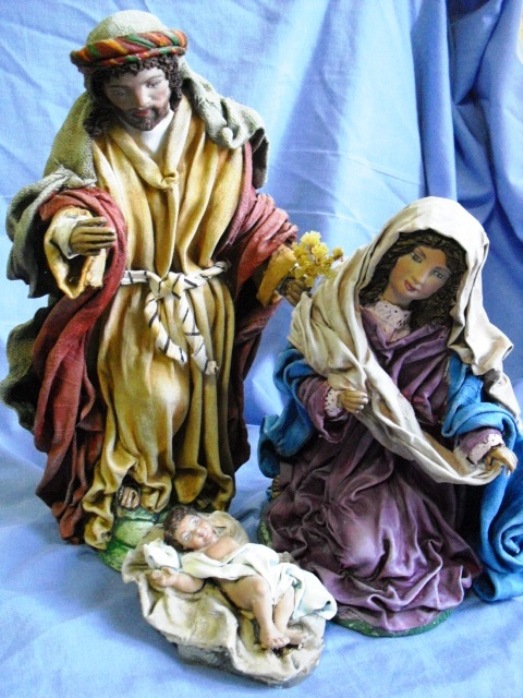 Hola tod@s, auí os dejo unas fotos del nacimiento que acabo de hacer, primero he trnsformado las figuras, a la Virgen la cambie la posición del cuerpo y los brazos que tenía sobre el pecho y San José sólo le cambié la posición de uno de los brazos separándolo del cuerpo, después entelar y pintar. Son de 30 cm y 21 la Virgen. Espero que os guste, y si nos es así pues estoy dispuesta a recibir todas las críticas que querais hacer para mejorarlo. Los colores no han salido como son el realidad, pero la culpa es de la cámara,jajaja.