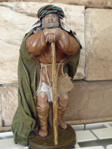 este pastor refleja la paciencia del que cuida un rebaño, ese gesto de apoyar las manos en el palo y la cabeza sobre las manos, es tan tipico de los pastores que vigilan su ganado, lola me hiciste recordar los pastores de ovejas de mi isla, un excelente trabajo, jugaflor a disfrutar de la figura.