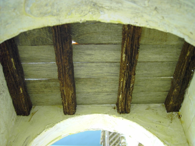 Conchi, donde está el suelo de madera es un pasadizo aéreo que comunica los dos edificios, -al parecer son de un terrateniente de aquellos- jeje. Esos canutillos que tú mencionas, son del respaldo de una silla pequeña, (de niño) pero mira por donde anoche desaparecieron, no me terminaron de gustar y fueron reemplazados por dos muretes, a los cuales, aquí en Murcia se les llaman "pie-amigo".