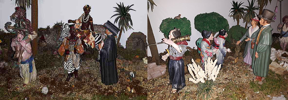 Pero además, ni siquiera hay un anacronismo en mi pesebre: si en el siglo XIX los Reyes Magos hubieran ido a adorar al belén, y fueran uno africano, el otro arabe/persa/hindú y el otro japonés, pues llevarían esa pinta, más o menos.
