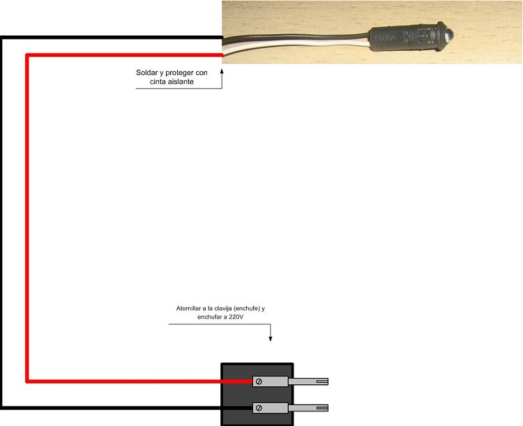 IMG_0141 (2).JPG (77KB - 211 descargas)Por cierto Silvia, no está de más que conozcas el "Termoretractil". Son unas "vainas" plásticas que sirven para proteger uniones soldadas y otros elementos. Se cortan y se meten en el cable, lejos del punto a soldar antes de hacer la soldadura. Una vez hecha la soldadura se deslizan por el cable hasta tapar la unión y con ayuda de aire caliente (un secador de pelo, por ejemplo) se "termoretraen", quedando fijas protegiendo la soldadura como en la foto (en el caso de la foto protegen una resistencia o un diodo).