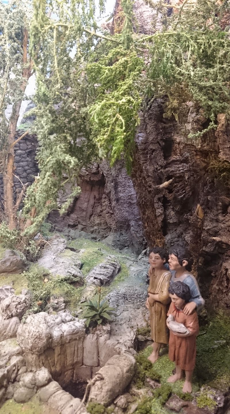 Personalmente, cada vez me inclino más por no ocultar las peanas. Hago el agujero para dejar los pies de la figura a la altuta del suelo y cubro la base con arena, musgo molido, paja o serrín. O la dejo sin tapar. Eso sí, siempre hundida.
