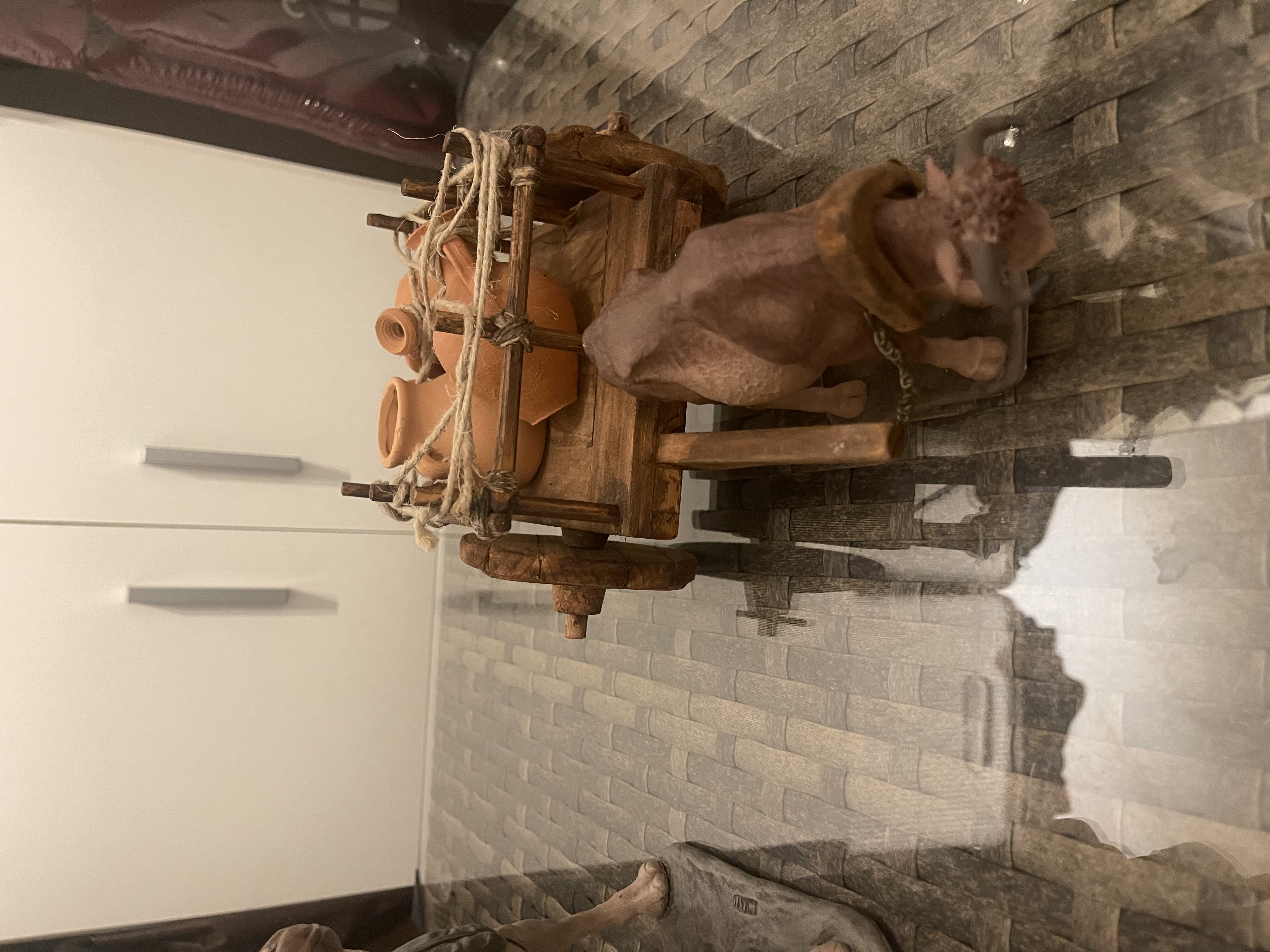 - Buey con carro de madera y tinajas para 14 o 16 cm: 90 euros.