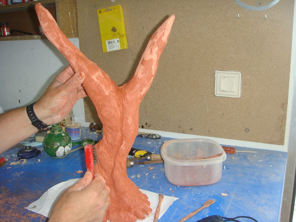 3º.- Una vez hecho esto, le acabo de dar la forma con pasta das y profundizo más en los detalles (nudos, etc.)