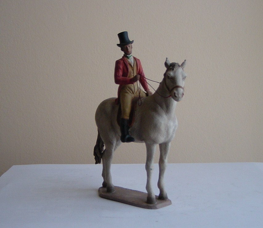 La niña pequeña, 6 cms.,la joven 9,5 cms., el hombre con chistera 10 cms., el caballero del caballo sentado 7 cms. por lo que creo que es de 11 cms., el caballo 12 cms. y las dos jovenes que están juntas 13 cms.