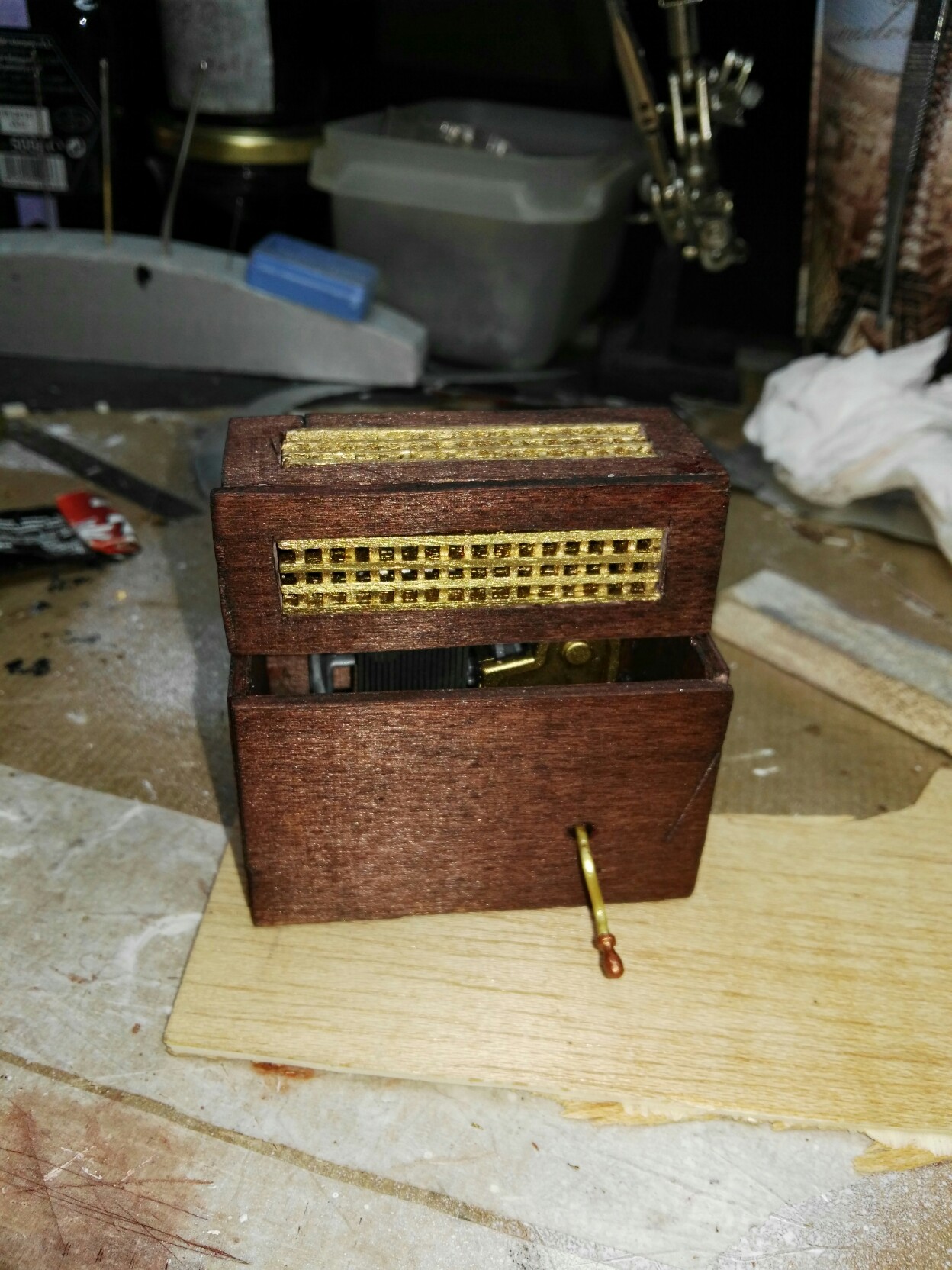 Organillo echo con madera de balsa, y de una caja musica para ampliar puesto de musica espero que os guste.
