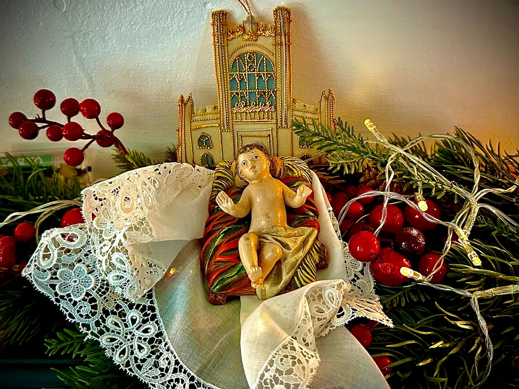 Y la pica en Flandes la pusimos en la misa... es tradición familiar antes de la cena de Nochebuena hacer una pequeña ceremonia donde "el Niño nace" Esta Navidad no podía ser menos, así que mi padre llevó desde Melilla el Niño Jesús de nuestro Nacimiento familiar, el que fue el origen de mi afición , a la ciudad de Wells... y esta Navidad, el Niño Jesús de Ortigas, el que lleva naciendo desde 1976 en la ciudad de Melilla, la Navidad del 2023, cuarenta y siete años después, nació en Wells, pero bajo el seno de la misma familia.