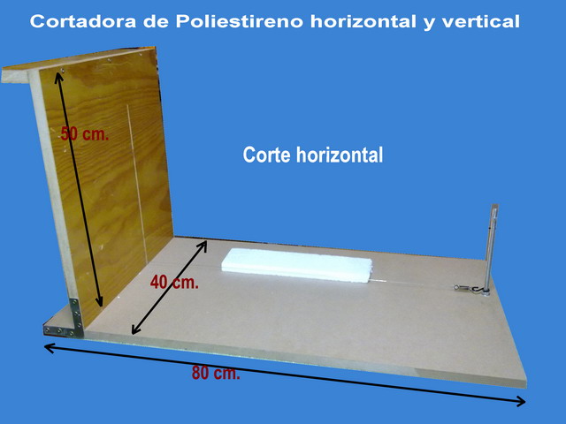 Sobre cortadoras hay un montón escrito en este foro, todas tienen su peculiar forma y cada uno le va dando unos "toques personales" según le convenga o se adapte mejor a sus necesidades y además como vas viendo la de los demás, en ocasiones adaptas a la tuya lo que otros han puesto y tú no. Esto es así, pero como me pides que ponga la mía, te voy a poner una de elllas que es la que uso para cortes de grandes piezas y que necesitan angulos rectos, sobretodo en los cantos, que muchas veces nos desviamos un poco con el cutter o que con los golpes o roces se van deteriorando los filos (del porexpam).