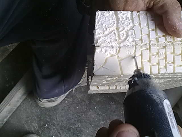 ¿con qué está heco todo el dibujo en el porex? ¿como has hecho para que la parte de abajo parezca pieda y la de arriba ladrillo? porque los ladrillos me imagino que habrás pasado y cepillo metálico, pero para las piedras??