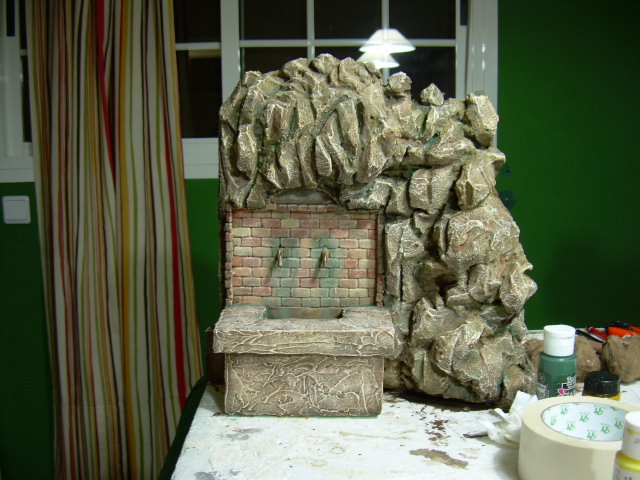 Esta es la fuente para mi belen recien pintada, a falta de ponerle un poquito de musgo.