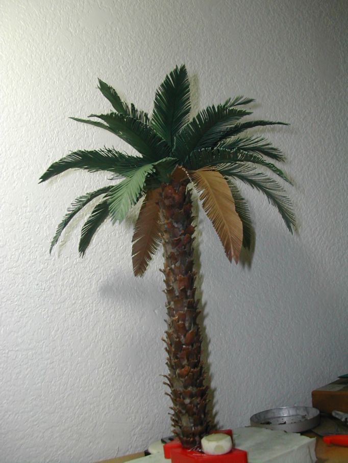 Esos troncos de palmera están hechos con pinas de pino carrasco que aunque a todos se les llaman pinos piñoneros en realidad no lo son si nos estamos refiriendo al piñón comestible, este solo sale del pino pinea o pino doncel, pero sus piñas son extremadamente grandes pues miden de 13 a 16 cm., y sus hojas o escamas miden unos 3 cm., de largas por casi 2 cm., de anchas. Sin embargo el pino carrasco echa unos piñones diminutos que en su gran mayoría suelen estar fallidos y que no son recolectados para aprovechamientos culinarios, sus piñas miden de 6 a 10 cm., pues bien, estas son las piñas que solemos utilizar para elaborar los troncos de palmera.