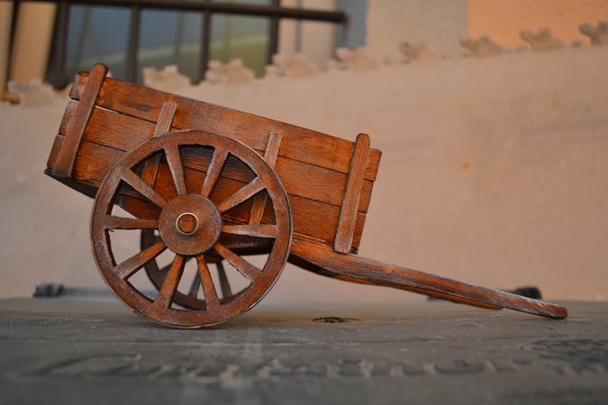Saludos, les muestro un carro hecho con madera de cajas de fruta, las medidas son 16cm de largo y 8cm de ancho.