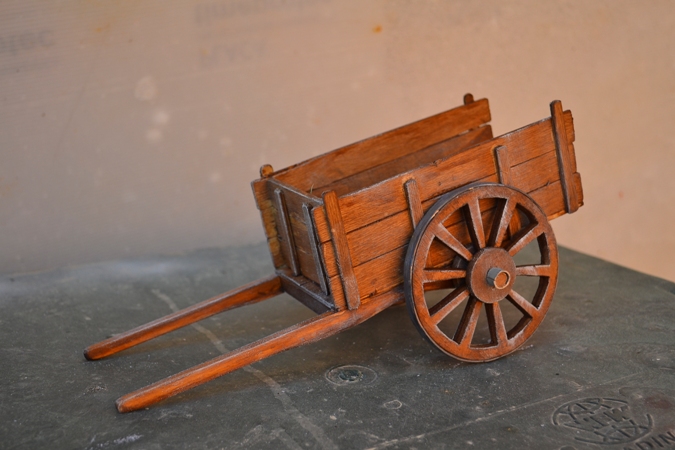 Saludos, les muestro un carro hecho con madera de cajas de fruta, las medidas son 16cm de largo y 8cm de ancho.