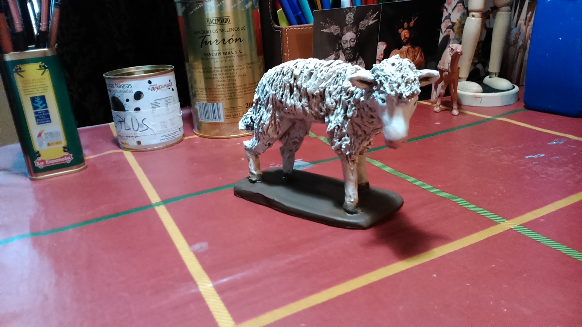 Aquí os dejo una foto de la oveja pintada. Estoy haciendo más modelos. Las iré colgando.