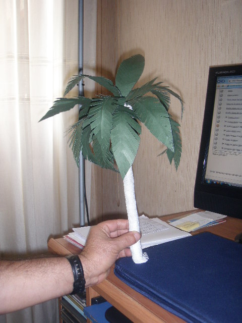 siempre ojeando por este foro para aprender cosas que nos explicais, me he decidido hacer una palmera haber como me salia,y por fin salio esto que me falta terminarla de pintar ,pero la pega que tiene que se me menean las hojas que he incrustado en pasta das,si conoceis algun metodo para que esto no me ocurra me lo decis y asi de paso opinais de lo que he hecho y como me ha quedado,os la pondre tambien cuando la haya pintado gracias por todo ,un saludo txacon