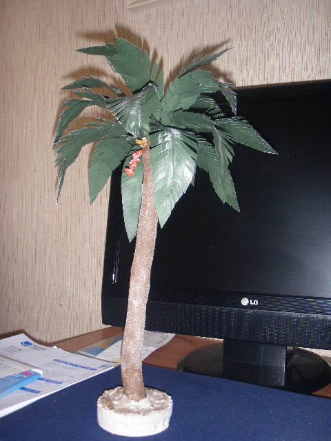 siempre ojeando por este foro para aprender cosas que nos explicais, me he decidido hacer una palmera haber como me salia,y por fin salio esto que me falta terminarla de pintar ,pero la pega que tiene que se me menean las hojas que he incrustado en pasta das,si conoceis algun metodo para que esto no me ocurra me lo decis y asi de paso opinais de lo que he hecho y como me ha quedado,os la pondre tambien cuando la haya pintado gracias por todo ,un saludo txacon
