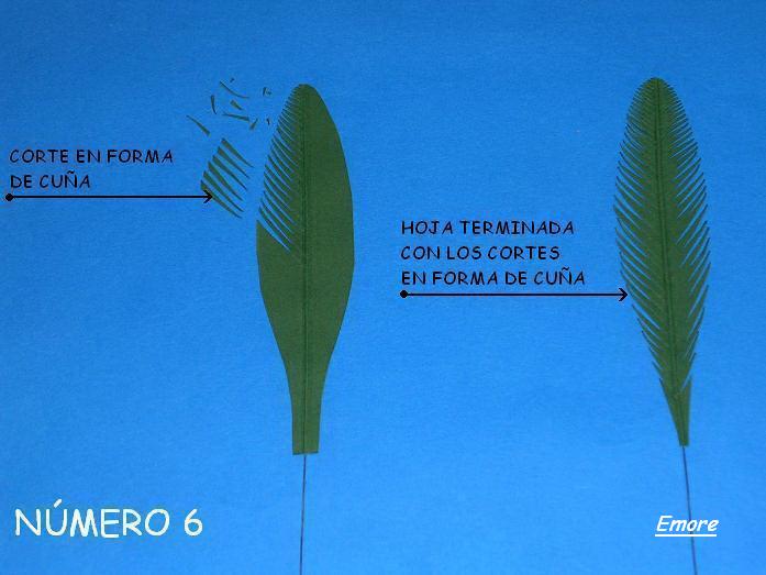 Quinto .- Terminación de la hoja, con unas tijeras le voy dando cortes en posición oblicua formando una cuña, como indico en la FOTO NÚMERO 6.