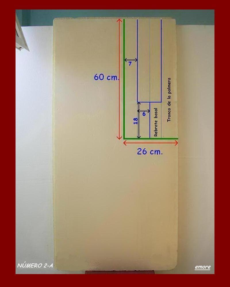 Los dos troncos de las palmeras datileras viejas que he construido, son para figuras de 24 cm. y para situarlas en primer plano. La construcción de los dos troncos y el montaje de las hojas, lo explico por el orden que a continuación indico: