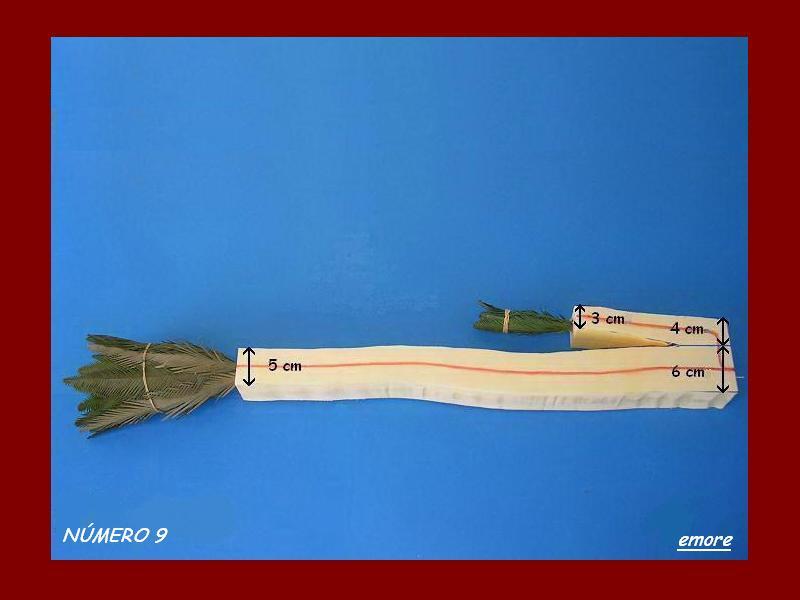 Pues la verdad que me da a mi que no hago una palmera ni de coña, he empezado probando a hacer una palmera para figuras de 12cm y como que creia que poniendo las medidas a la mitad de las plantillas de emore que son para figuras de 24 cm y una vez pegada la cartulina y los alambres como que se queda muy rigida para el corte en cuña, como bien explica en su paso a paso.