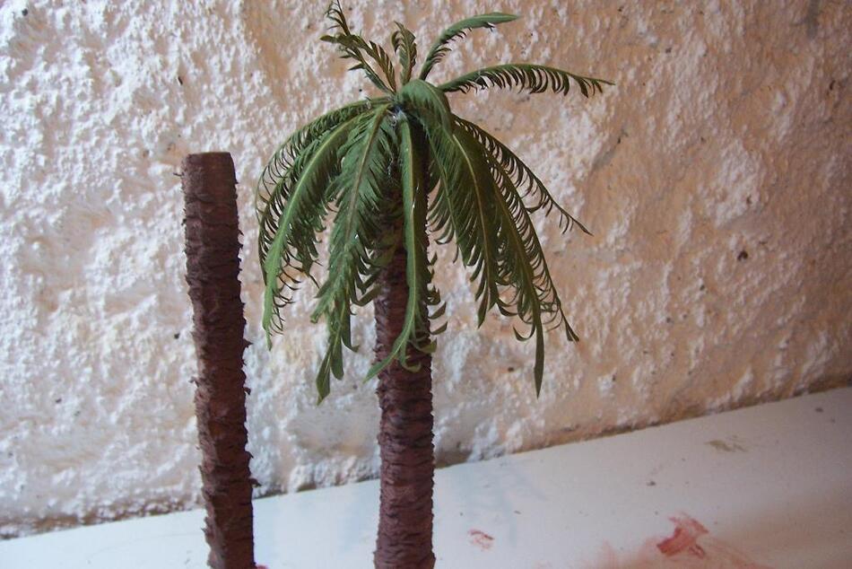 de mis palmeras hechas con hojas de adelfas. el tronco los hice como ya se ha comentado muchisimas veces por aqui