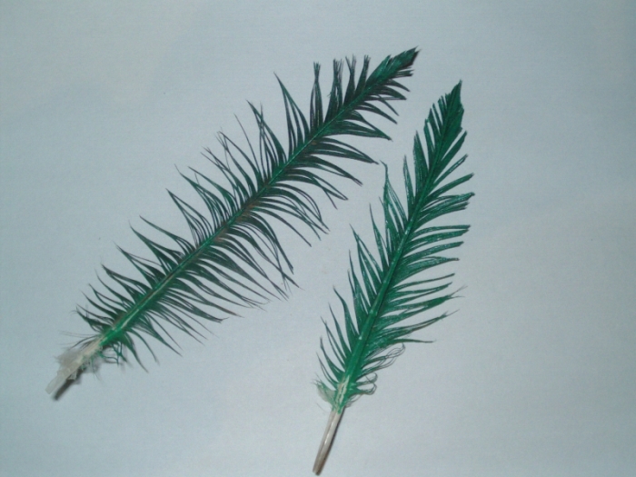 Aquí os envío unas muestras que hice el año pasado para hacer hojas de palmera, las hice con plumas de gallina.