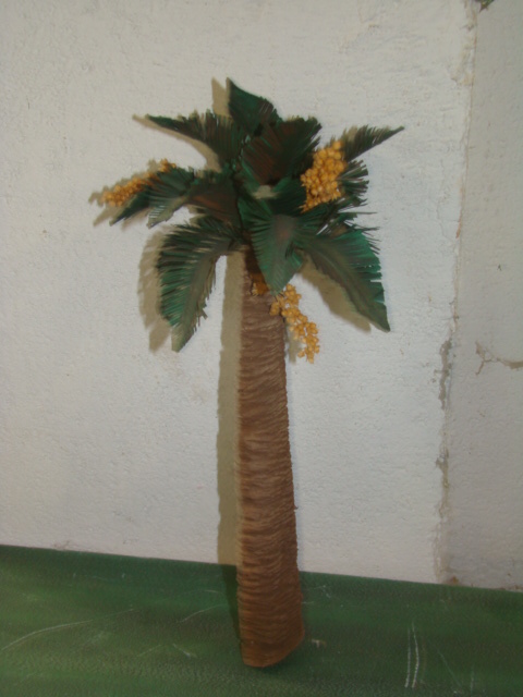 hola amigos,os muestro unas de tantas palmeras que he hecho estos dias,son gracias a lola,ella explica de maravilla como se hacen y este es el resultado,he hecho de diferentes medidas para la lejania y cercania,me falta de poner unos datiles a las grandes como tiene la pequeña,espero que os gusten,saludos.
