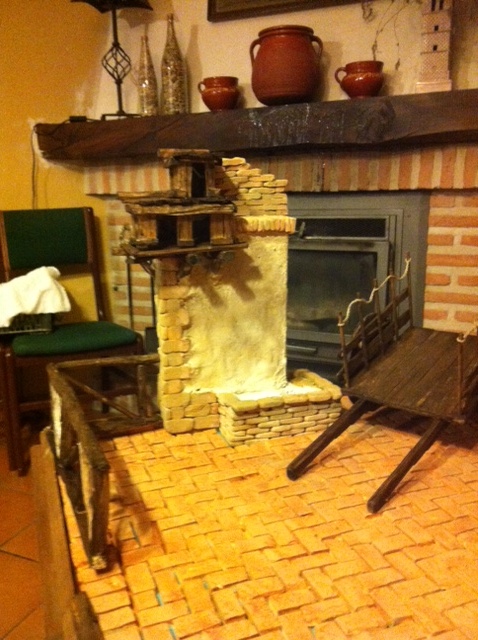 ¡Muy bonito! Ha quedado estupendo, admiro a los que pintáis con maestría. Y la chimenea de atrás, bién puede valer para un belén, con su madero y vasijas. ¡Felicidades!