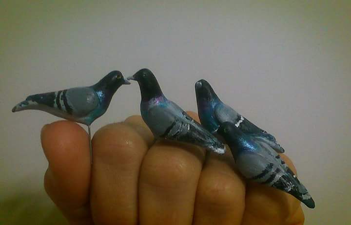 Las palomas realizadas una a una en material muy duro ,patas metalicas y policromadas una a una,todo a mano,artesanales..el precio es de 1,75 €,siendo el pedido minimo 10 palomas, gastos de envío aparte.