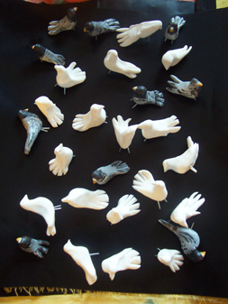 sigo haciendo palomas,algunas estan sin pintar le pondre colores beiges y blancos ( consejo de Oriente y de Bambi ).