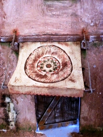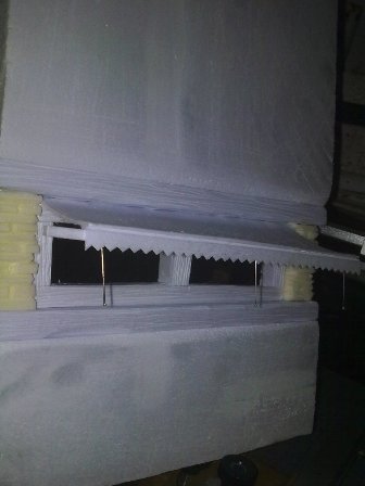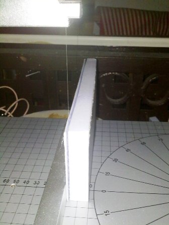 - 4 FOTO: una vez seco i fijo aremos una tira cuadrada de porex que simulara la madera que sujeta el toldo, la pondremos en la esquina del toldo i lo que será el fleco del toldo la pegamos, agujas i listo! A pintarlo jejej